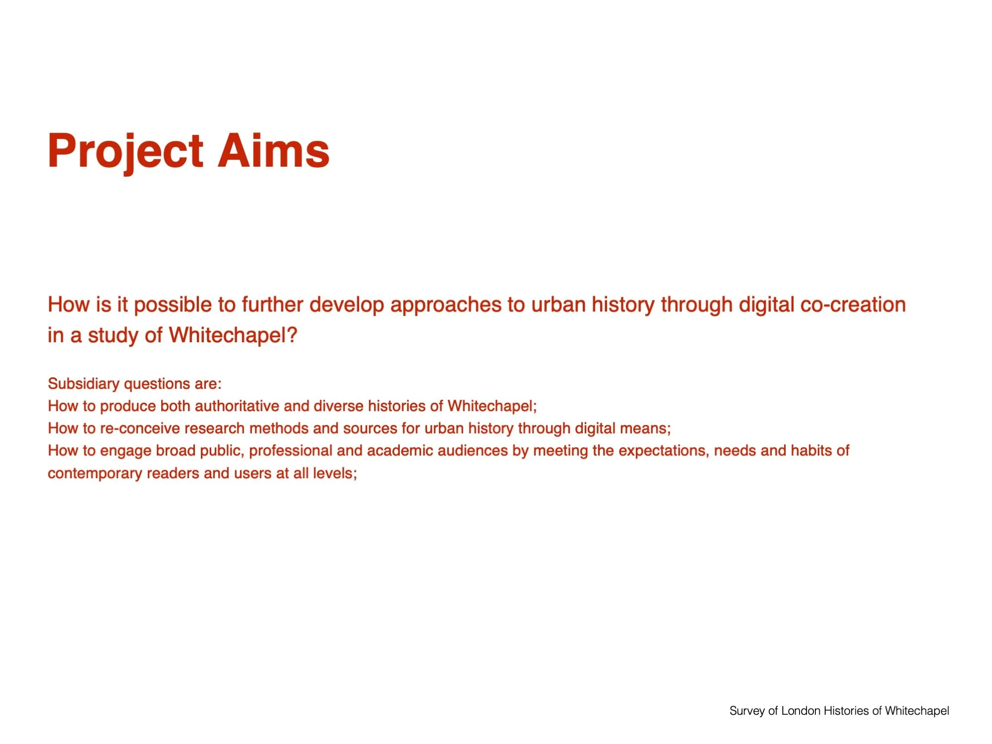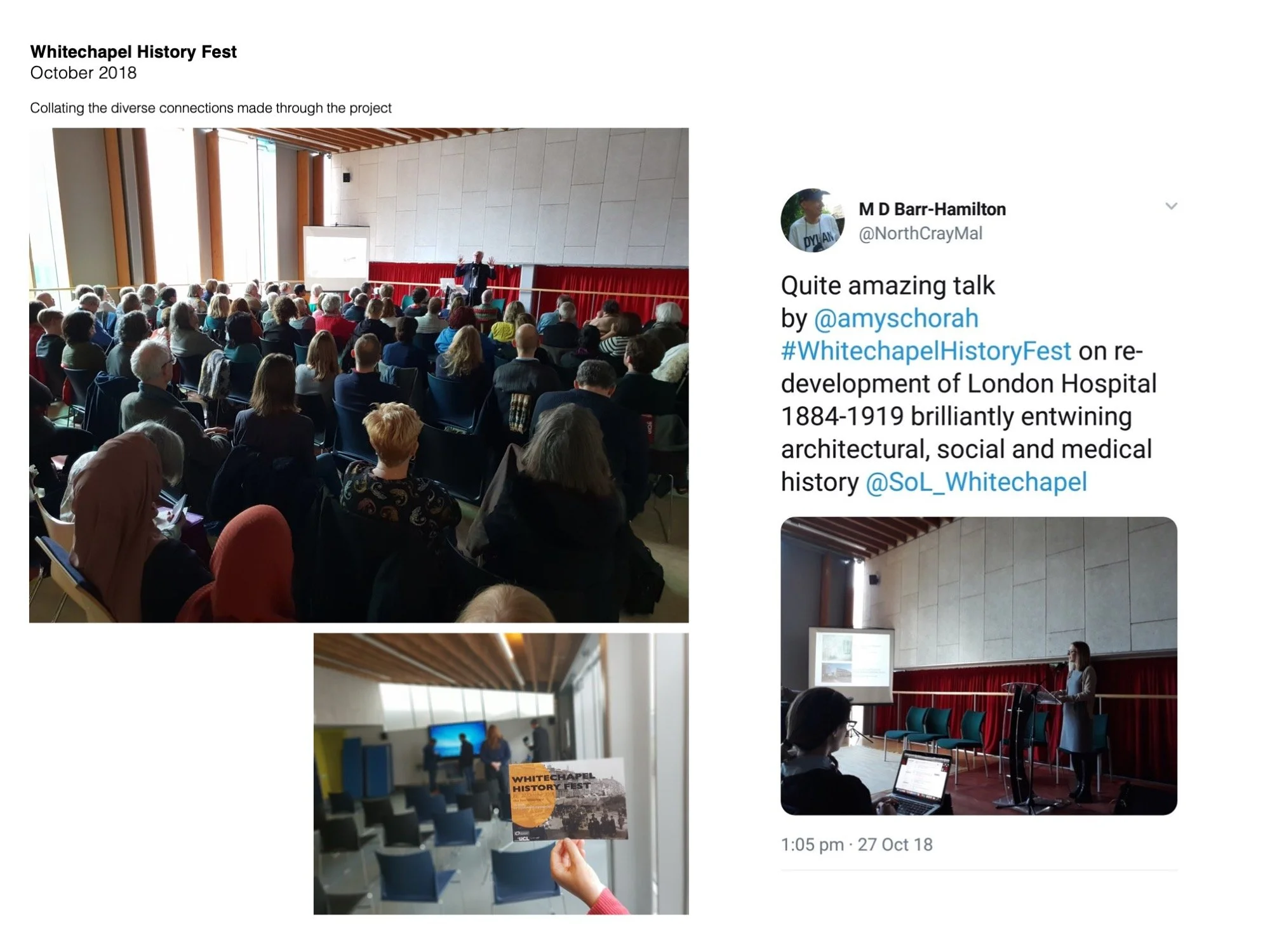 The Whitechapel project functioned as a live experiment in the co-production of urban history. It brought public knowledge and lived experience into direct dialogue with the Survey’s formal archival and architectural research. A central task throughout was to create an equitable platform where these different forms of knowledge—expert, experiential, vernacular—could sit side by side. In doing so, the project offered a multi-vocal account of Whitechapel: a woven territory of interlinked narratives rather than a single, linear historical storyline.